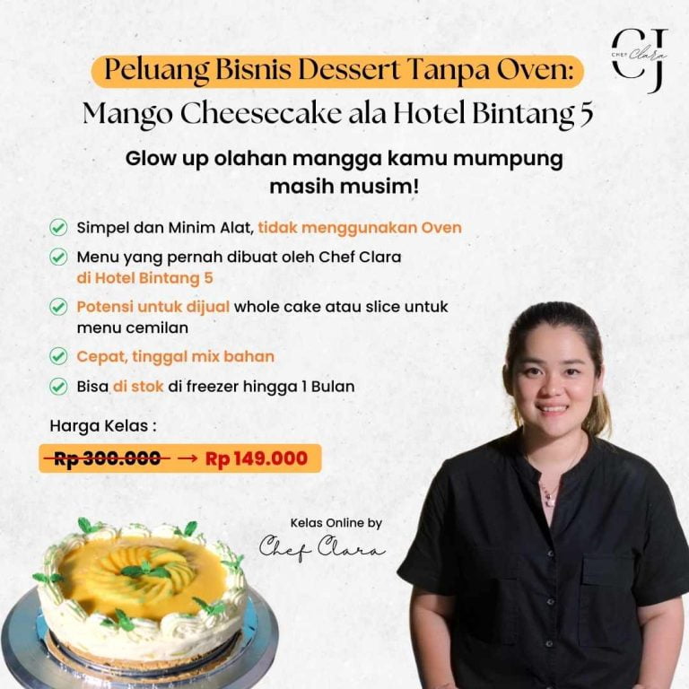 • Video Pembelajaran Resep Mango Cheesecake by Chef Clara -> senilai Rp 1000.000